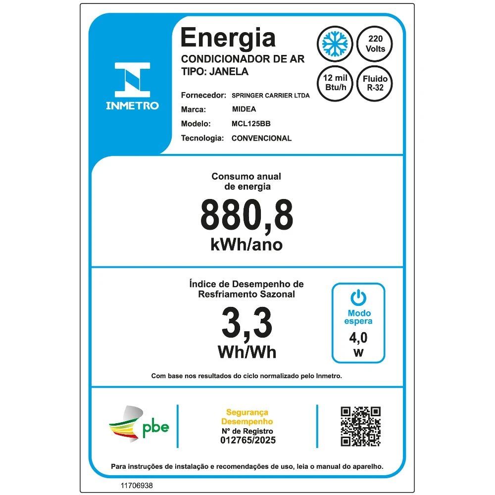 Ar-Condicionado Janela 7500 BTUs Mecânico SPRINGER MIDEA / REF. QCL075BB