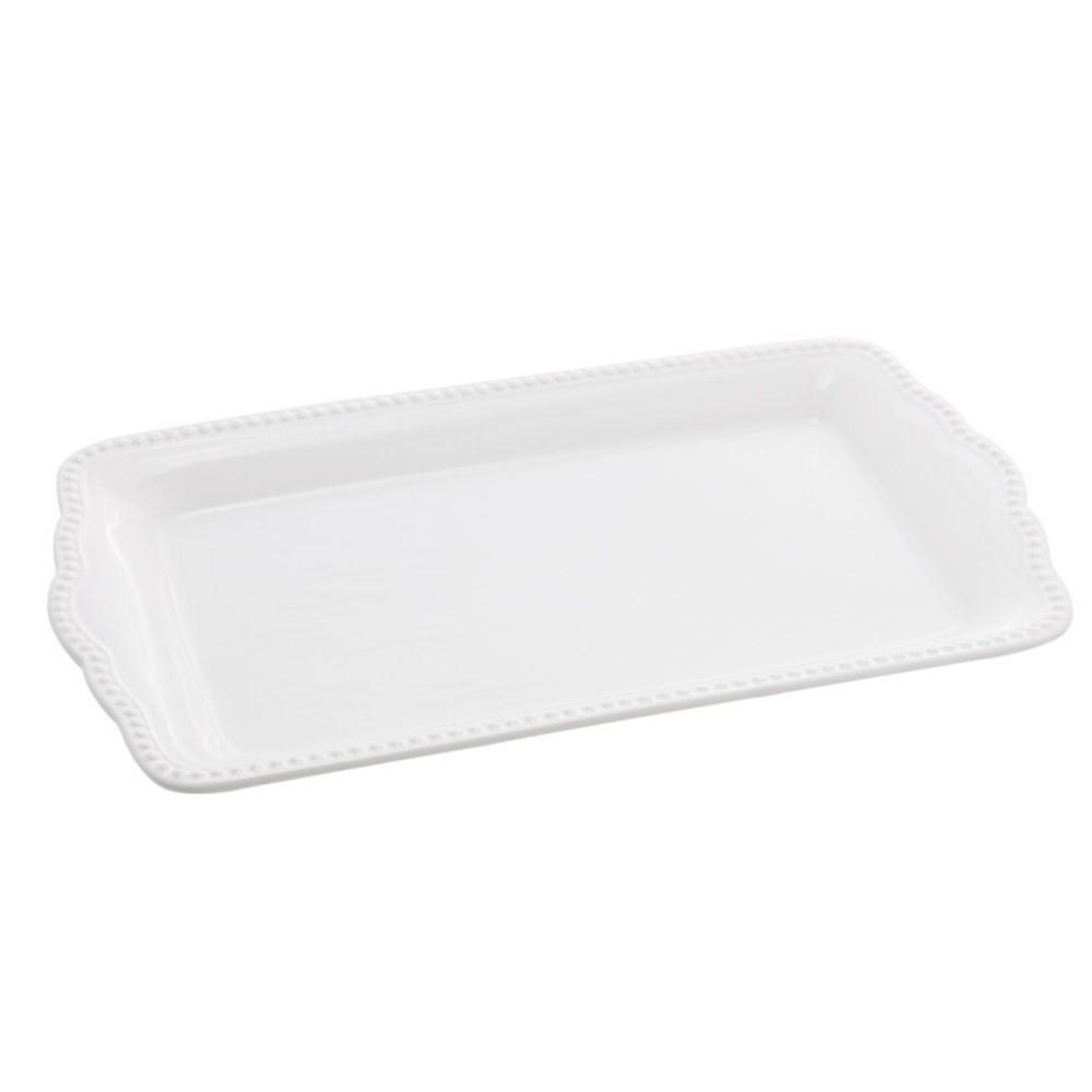 Bandeja Decorativa Retangular de Cerâmica Dots 28x16x3cm Branca LYOR / REF. 1958