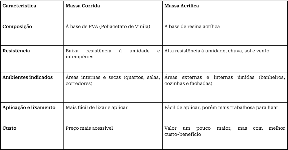 Massa acrílica x massa corrida: qual a diferença? |