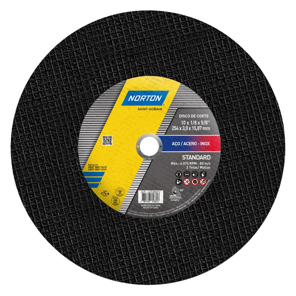 Disco de Corte em Inox 10x1/8x5/8 Standard NORTON / REF. 66252850812