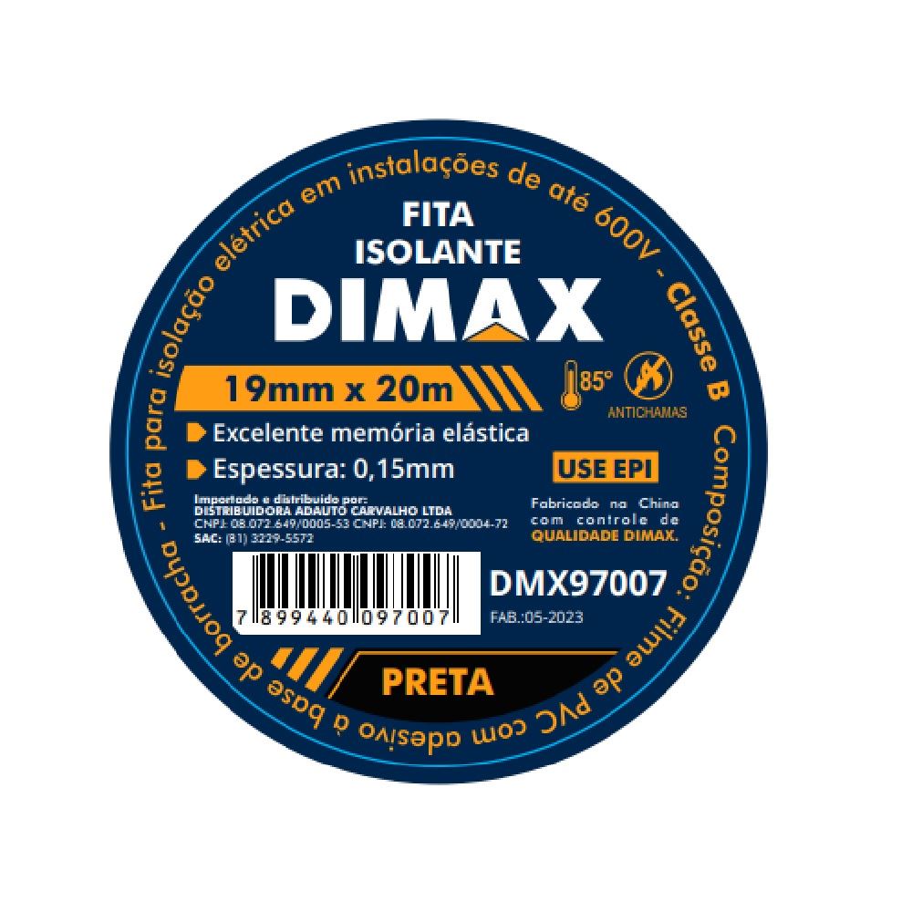 Fita Isolante 19mmx20m Preta DIMAX / REF. DMX97007
