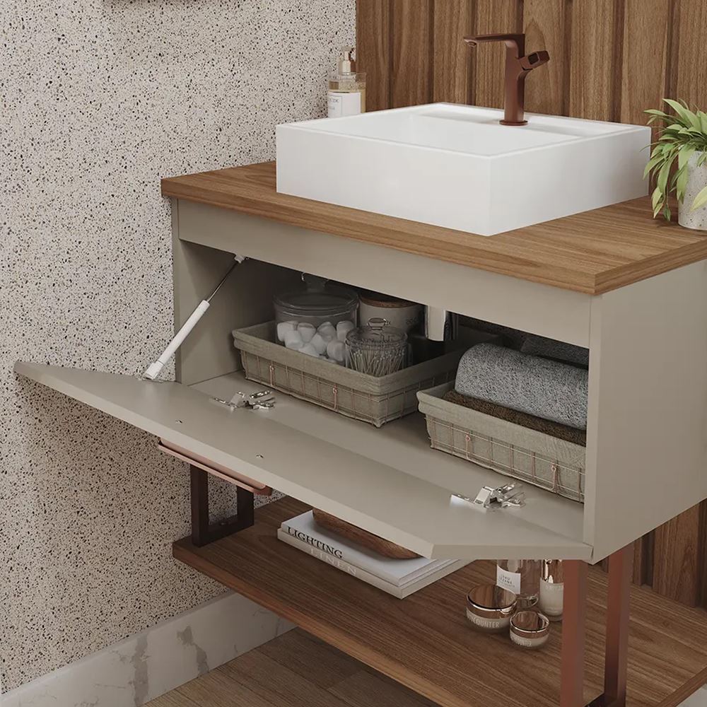 Gabinete para Banheiro MDF Suspenso 60cm Duna com Cuba Cappuccino e Freijó MGM / REF. 22455.50
