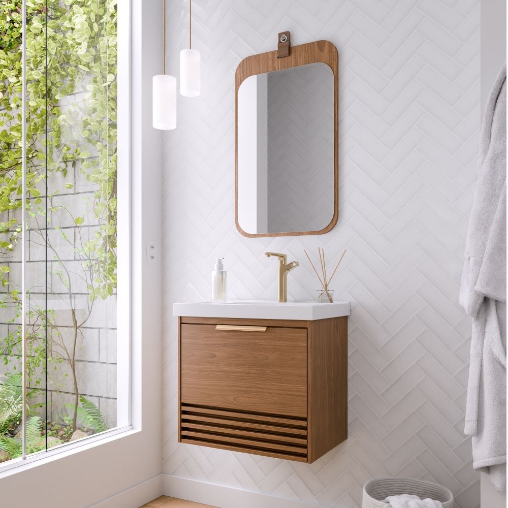 Gabinete para Banheiro MDF Suspenso 60cm Paraty com Cuba Freijó MGM / REF. 32466.43