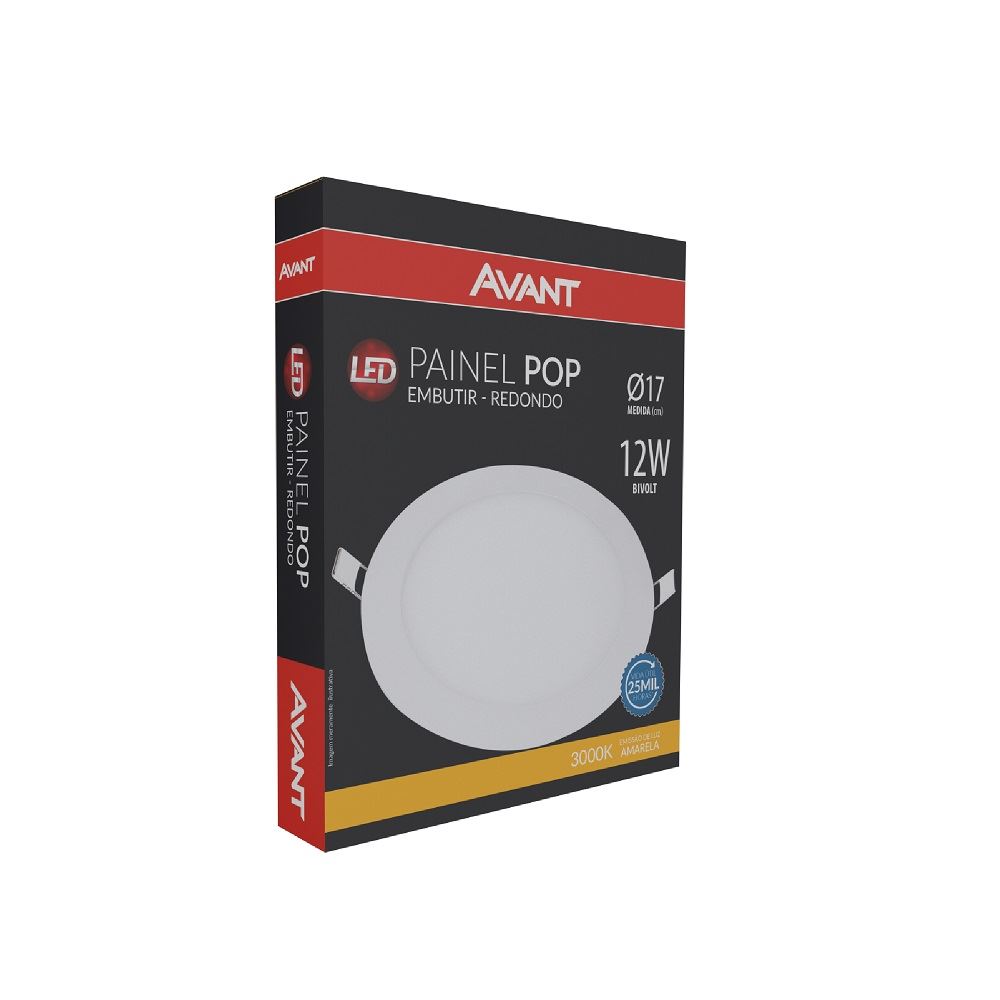 Painel LED em Alumínio Redondo 12W de Embutir Bivolt 3000k Branco AVANT / REF. 840080573