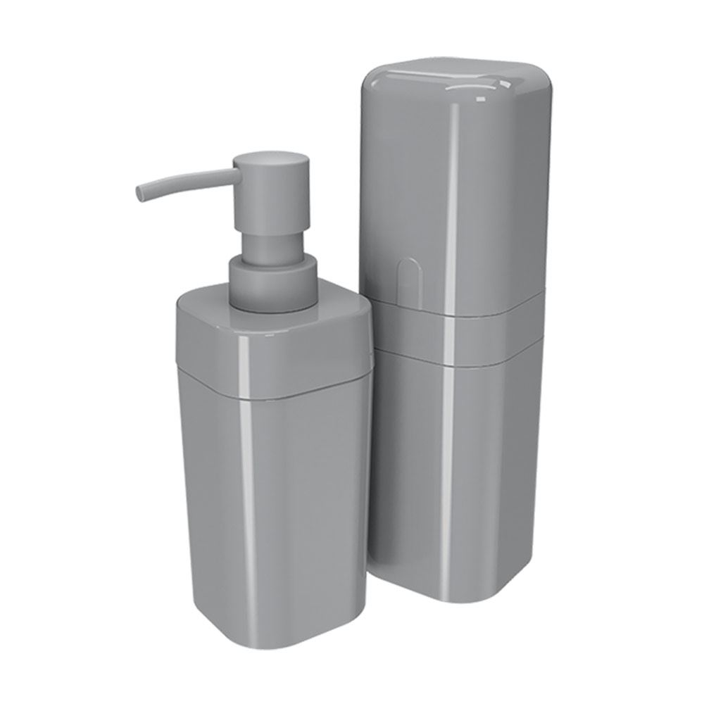 Porta Escova e Dispenser para Sabonete Líquido Plástico Splash Cinza Frio COZA / REF. 99345/7499