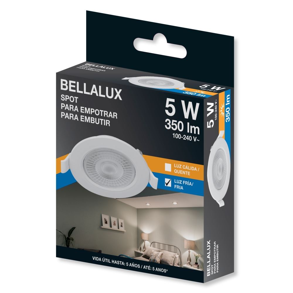Spot em Abs Led 5w Bivolt Embutir Redondo 6500K Branco BELLALUX / REF. 7024277